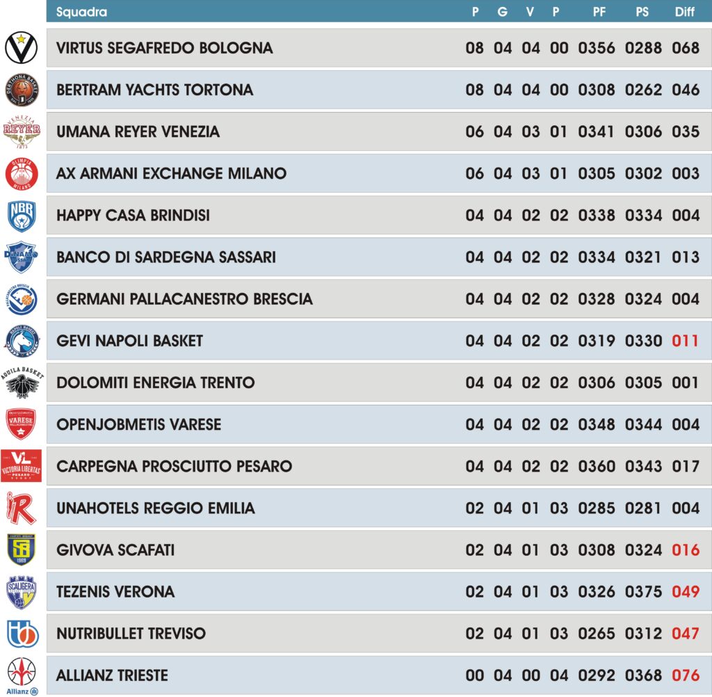 Prosegue il duello a distanza tra le due capoliste Bologna e Tortona, la prima impegnata in trasferta, la seconda in casa. Milano in cerca di riscatto dopo la prima sconfitta stagionale. Trieste va a Napoli a caccia dei primi punti della stagione. Ecco cosa riserverà nel dettaglio il quinto turno della massima serie della gerarchia cestistica nazionale.