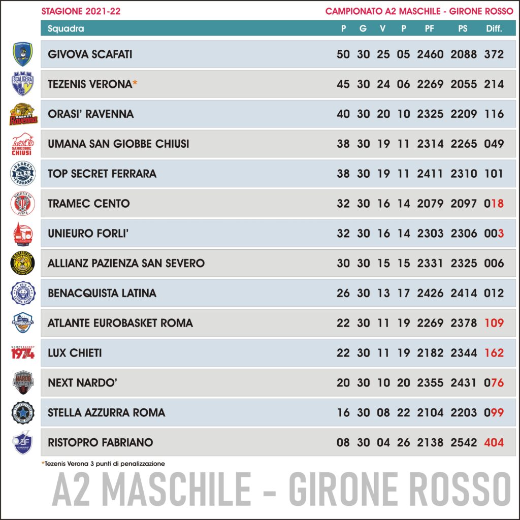 Classifica A2 Girone Rosso