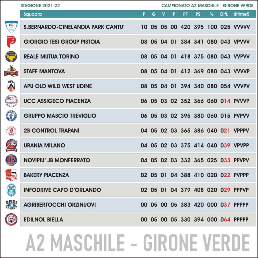 Scafati in vetta solitaria nel girone rosso dove si registra anche la prima vittoria di Fabriano. Cantù, invece, mette le mani sul match clou con Mantova e si proietta in solitudine in testa al verde dove Treviglio vince a valanga sull’Urania e continua la crisi di Orzinuovi e Biella.