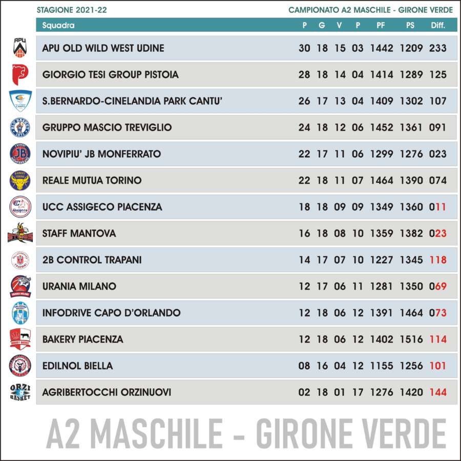 Udine, Pistoia, Cantù. Ecco il terzetto delle meraviglie che continua a regnare sul girone. Treviglio e Casale, però, inseguono bene. In coda Orzinuovi in ampio debito d’ossigeno cerca la seconda vittoria stagionale per restare aggrappata al campionato.