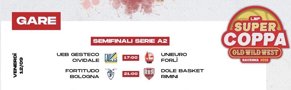 A dare il la alla manifestazione, ed alla stagione ufficiale della Serie A2, la sfida tra la Gesteco Cividale ed i romagnoli dell’Unieuro Forlì, con palla a due prevista per le ore 17.00. Due squadre che, in vista del prossimo campionato, hanno scelto la via della continuità, a partire dalla conferma dei due coach, Stefano Pillastrini ed Antimo Martino; i friulani hanno rinforzato il roster protagonista dell’ottima stagione scorsa con tre nuovi innesti: l’ex Fortitudo Deshawn Freeman, l’esperta guardia Luca Cesana ed al giovane Alessandro Ferrari, ala di due metri. In casa Unieuro, invece, spazio al califfo Pietro Aradori, 37 anni e non sentirli, in uscita dalla Fortitudo, alla guardia Simone Pepe, ed ai lunghi Masciadri e Gazzotti.