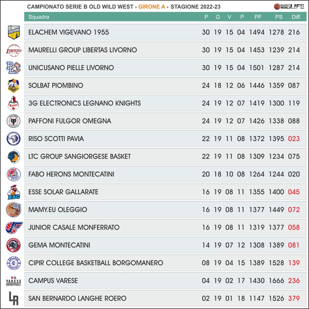 Due importanti e sentiti derby catturano l’attenzione in questo girone. La capolista Vigevano infatti, va a caccia della nona vittoria su dieci davanti al proprio pubblico contro una Pavia reduce dalla clamorosa rimonta nel finale contro Legnano che l’ha riportata ad appena due punti dal quarto posto. Sfida invece stracittadina al PalaTerme di Montecatini dove una Gema alla ricerca di un successo per uscire dalle ultime quattro posizioni, affronta una Fabo Herons in grandissima crescita e che ha vinto, nell’ultima partita disputata, sul parquet della Pielle Livorno. In apparenza abbastanza comodi gli impegni delle altre due compagini che comandano al momento la classifica, con la Libertas Livorno che gioca sul parquet del fanalino di coda Langhe Roero mentre la Pielle ospita una Oleggio a caccia di punti per la zona medio bassa della graduatoria.