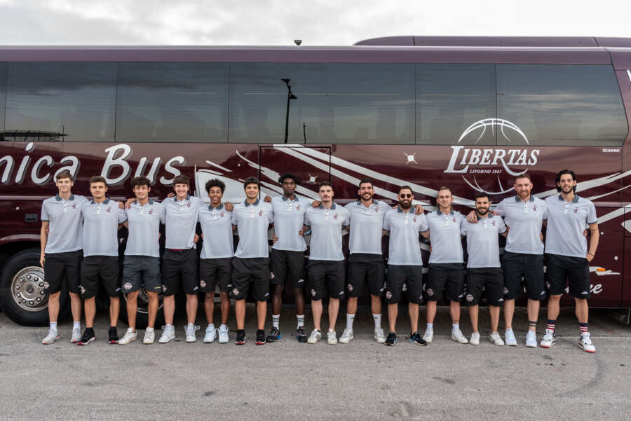 Un bella festa: calda ed emozionante. La Libertas Livorno 1947 ha presentato la squadra ai tifosi e alla città. Lo ha fatto nella suggestiva cornice del Parco Levante durante una vera e propria ‘cerimonia’ che ha visto i giocatori arrivare sul posto al bordo nel nuovissimo e fiammante pullman amaranto di Labronica Bus, griffato Libertas.