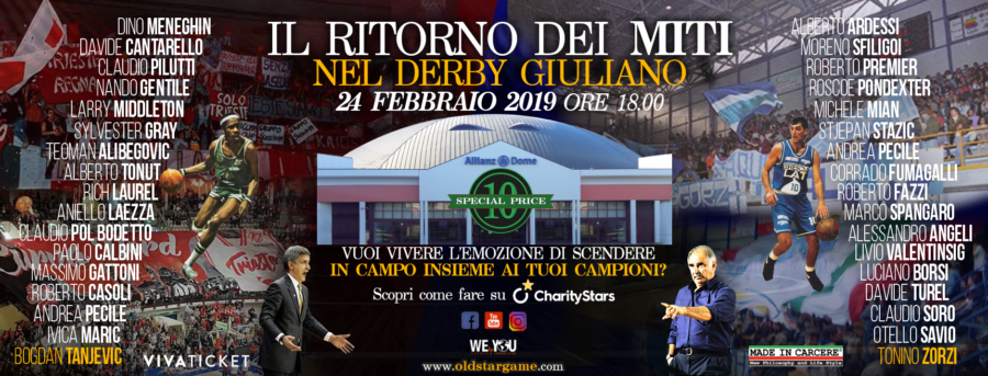 Sarà la città di Trieste, nella sosta di campionato, ad ospitare l’edizione 2019 dell’evento organizzato dall’agenzia We for You Events&Communication di Ale Nava con la collaborazione dell’Alma Pallacanestro Trieste per celebrare con un tributo alla memoria il ritorno in serie A con i Miti della storia biancorossa, che sfideranno con una gara amichevole in un Derby, i Miti della Pallacanestro Gorizia.