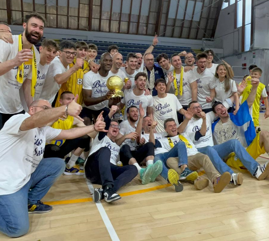 Il quarto si archivia 64-49 a favore di Sabbatini e compagni che vedono vicinissimo il traguardo anche perché all’alba degli ultimi dieci minuti di gioco un break di 10-0 fa cominciare con largo anticipo la festa gialloblu. Finisce 77-56, il sogno è realtà. L’anno prossimo sarà Serie B, meritata, voluta e legittimata da un dominio assoluto iniziato ad ottobre.
