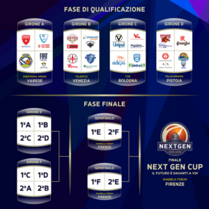 Regolamento: il calendario delle partite prevede lo svolgimento di quattro partite l’1/12 e due partite il 2/12; le prime due squadre classificate per ciascun girone accederanno alla fase finale che si svolgerà in corrispondenza della Final Eight di Coppa Italia con 2 gironi round robin (Giovedi 14 e Venerdi 15 Febbraio) dalle quali usciranno le quattro squadre che si affronteranno nella final 4 conclusiva ad eliminazione diretta (Sabato 16 e Domenica 17) con finale ad aprire la finale di coppa italia.