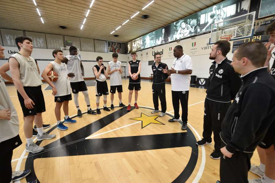 Succede alla mitica palestra Porelli, e “Sugar” ci entra visibilmente emozionato, quasi trent’anni dopo i tempi di quelle magìe. Il timone dell’Under 18 di Virtus Unipol Banca glielo cede con un abbraccio Federico Vecchi, coach della formazione e responsabile del Settore Giovanile della V nera.