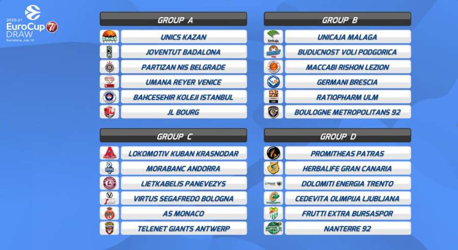 Girone certamente non semplice anche per la Germani Brescia che farà il suo esordio stagionale nella competizione a Podgorica, la casa del Buducnost e poi sfiderà il Ratiopharm Ulm, il Maccabi Rishon LeZion, l’Unicaja Malaga, indubbiamente la favorita del gruppo e il Boulogne Metropolitains.