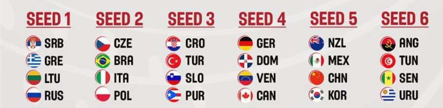 Serbia e Lituania sono state inseriti in Fascia 1, insieme a Grecia e Russia. Croazia in Fascia 3, con Turchia, Slovenia e Portorico. Il Canada è in Fascia 4, con Germania, Repubblica Dominicana e Venezuela. In Fascia 5 Nuova Zelanda, Messico, Cina e Corea del Sud. In Fascia 6 Angola, Tunisia, Senegal, Uruguay.