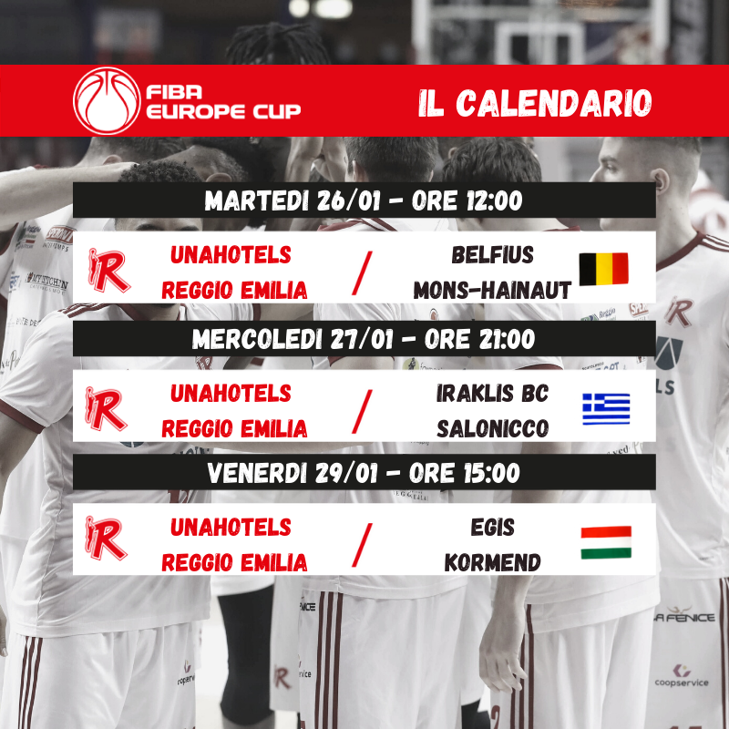 La UNAHOTELS Reggio Emilia, facente parte del Gruppo A, farà il suo esordio martedì 26 gennaio alle ore 12:00 contro i belgi del Belfius Mons-Hainaut.